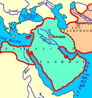 В 30-х годах VII века возник Арабский халифат — могущественное военно-феодальное государство, в образовании которого большую роль сыграла новая религия — ислам. Во главе государства стоял халиф («преемник Мухаммеда»), который, являясь как светским, так и духовным владыкой, был наделен всей полнотой деспотической власти. В 630— 640 гг. арабы нанесли сокрушительные удары Сасанидской державе и завоевали ее. Их продвижение не смогли приостановить и византийцы. Византийская империя потеряла многие из подвластных ей стран и областей. Халифат, расширяясь, превращается в огромное государство, границы которого простираются от Памира до берегов Атлантического океана и от Кавказского хребта до Аравийского моря.