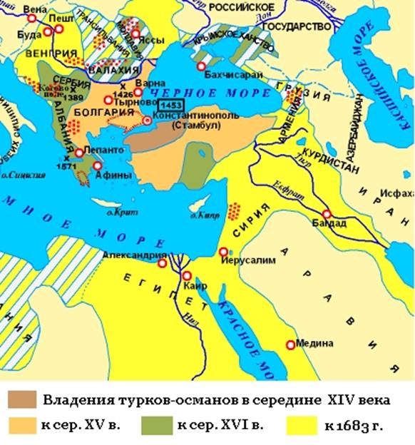 Турецко-османское военно-феодальное государство, основы которого в конце XIII века заложил на северно-западной окраине Малой Азии Осман-бей, в результате многочисленных походов и войн уже во второй половине XIV века подчинило своей власти ряд стран и государств. В 1453 г. турки-османы захватили столицу Византии Константинополь и окончательно сокрушили Византийскую империю. Опустошительные походы турецких султанов продолжались и в дальнейшем.