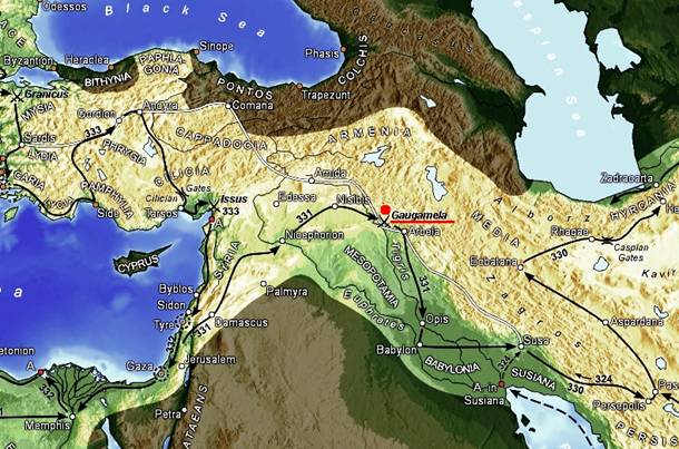 В 331 г. до н. э. в битве при Гавгамеле решилась судьба одной из могущественных держав Древнего Востока — персидской Ахеменидской державы. Властитель ее Дарий III сделал последнюю попытку отразить натиск Александра Македонского, который за три года до этого во главе греко-македонских войск вторгся в Азию. Одержав ряд крупных побед, Александр уже успел завладеть западной частью государства Ахеменидов, включая Египет, и теперь преследовал Дария III, намереваясь нанести решительный удар. В битве при Гавгамеле в составе персидской армии принимали участие и армянские отряды. Дарий III проиграл сражение, несколько позже был убит своими же приближенными, а Александр продолжал свой поход на восток, в Среднюю Азию, затем в Индию, завладев, таким образом, и восточной частью государства Ахеменидов и даже выйдя за его пределы. Так возникло гигантское государство Александра Македонского, столицей для которого он избрал город Вавилон — древнейший культурный центр.