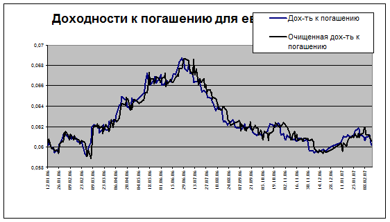 График 3. Динамика фактической и очищенной доходностей к погашению для еврооблигации