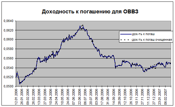 График 4. Динамика фактической и очищенной доходностей к погашению для ОВВЗ