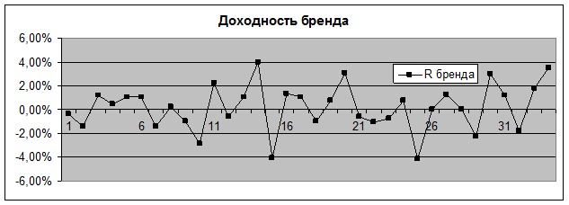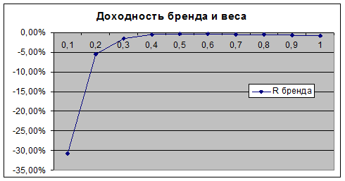 7) Вес бренда мы фиксируем на уровне 0,5, хотя возможен вариант с большим весом и с отрицательной доходностью. Это бы означало, что за рассматриваемый период стоимость бренда упала.