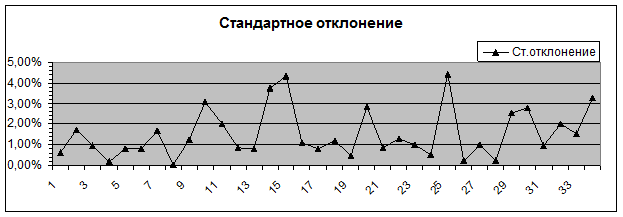 Ниже приведены графики характеризующие динамику стандартных отклонений и динамику доходности бренда.