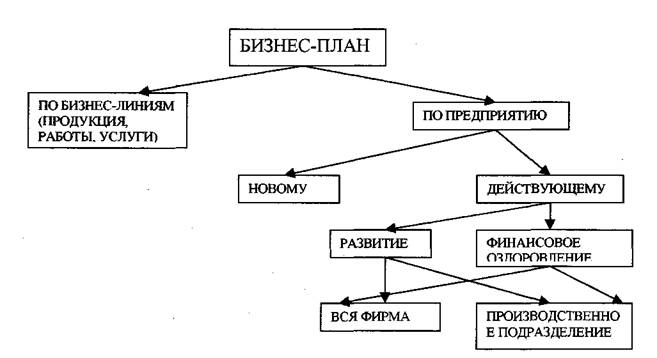 Практика применения бизнес-планов включает множество его версий, различных по форме, содержанию и структуре. Зарубежные фирмы предпочитают разрабатывать планы на отдельную сделку, в России бизнес-план разрабатывается чаще всего для создания нового предприятия. Имеются различные классификации бизнес-планов по объектам бизнеса (рис. 2.3.)