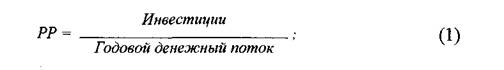 1. Период окупаемости (Payback Period, PP) является одним из самых распространенных в мировой и особенно в отечественной практике, основан на определении периода времени, который потребуется для определения периода времени, который потребуется для возмещения суммы первоначальных инвестиций (чем меньше срок окупаемости, тем меньше риск для инвестора):