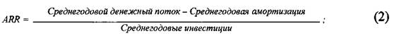 2. Модель учетной (средней расчетной) ставки рентабельности (Accounting Rate of Return, ARR) основывается на показателе среднегодовой чистой прибыли, чаще всего отнесенной к среднегодовым инвестициям.