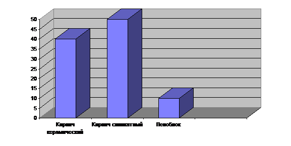 · На сегодняшний день потребности покупателей на рынке удовлетворяются в основном за счет силикатного и керамического кирпича как видно из рисунка 3.1 они занимают 90% рынка. Наша фирма предполагает выходить на рынок с ценой продукта приблизительно равной цене производителя силикатного кирпича сравнительно по объемам единицы продукции (около 1800 рублей за м3 продукции ), но значительно лучшими характеристиками (Легкость, теплоотдача, быстрота в возведении, шумоизоляция). Это как мы считаем, позволит нам несколько потеснить этот материал. Однако могут существовать следующие проблемы вступления на рынок