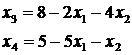 Базисные переменные х1 и х2, а свободные х3 и х4.