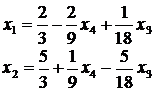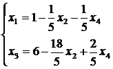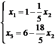 , отсюда следует, что ведущая строка первая; ведущий элемент 18/5, переменная x2 становится базисной, а x3 – свободной.