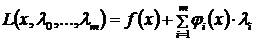 Функция Лагранжа представляет собой линейную комбинацию целевой функции и функций, определяющих ограничения задачи. Коэффициенты l1,..., lm линейной комбинации называются множителями Лагранжа.