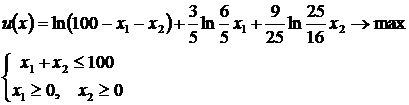 . Требуется найти такие значения переменных x1, x2, чтобы величина u(x) была максимальной.