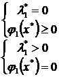 Условия дополняющей нежесткости для данной задачи представляют собой систему из трех уравнений с тремя неизвестными x1, x2, l, имеющую вид (в скобках каждого уравнения находятся частные производные функции Лагранжа по соответствующим переменным):