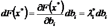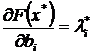 Каждому лимитированному производственному фактору соответствует множитель Лагранжа li ³ 0. Кроме того, ненулевые множители Лагранжа показывают, какие из производственных факторов в оптимальном плане будут израсходованы целиком, что в некотором роде ограничивает возможность дальнейшего увеличения выпуска. Посмотрим, как изменяется оптимальное решение (план) при малых изменениях лимитирующих величин bi. Иными словами, мы предположили, что оптимальный выпуск есть функция от запаса ресурса: x(b) = (x1(b),..., xn(b)). Показатель эффективности F(b) = F(x(b)) при этом является сложной функцией лимитов ресурсов. Все ограничения представляют собой функциональные соотношения компонентов выпуска x и, следовательно, также являются сложными функциями ji(x(b)) лимитов b.