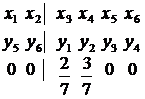 2) Установим соответствие между переменными: переменной xi из исходной задачи ставится в соответствие дополнительная переменная из двойственной задачи, введенная в i-е ограничение (x1 ~ y5, x2 ~ y6). Аналогично, первоначальным переменным двойственной задачи соответствуют дополнительные переменные исходной задачи.