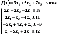 3. Каждая из задач задана в стандартной форме, причем в задаче на максимум все неравенства вида ”≤”, а в задаче на минимум – все неравенства вида “≥”.