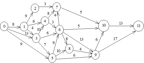 Поздний срок tп(i) | 0 | 9 | 40 | 13 | 26 | 20 | 29 | 43 | 38 | 42 | 48 | 61 |