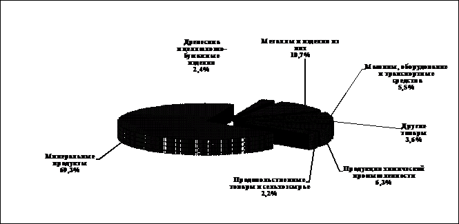 Указанные обстоятельства свидетельствуют о необходимости формирования рациональной внешнеторговой политики. Качество внешнеторговой политики в значительной степени определяется ее информационно-аналитическим обеспечением. Вместе с тем, как показывает практика, существующий уровень информационно-аналитического обеспечения не позволяет в полной мере формировать эффективную внешнеторговую политику. Так, например, несмотря на ряд позитивных сдвигов, произошедших в последние годы, ситуация во внешнеторговой сфере по-прежнему далека от благополучной. Об этом, в частности, свидетельствует приведенная на рис. 1 и 2 товарная структура экспорта и импорта в 2010 году.