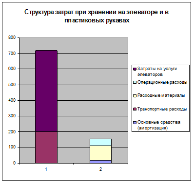 Статья затрат | При хранении на элеваторе | При хранении в рукавах | ||