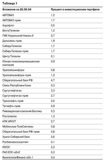 Успех или неудача в работе паевого инвестиционного фонда напрямую зависит от того, насколько грамотно составлен портфель. Давайте посмотрим табл. 1, в которой представлен состав портфеля одного из фондов.