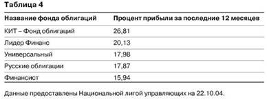 А если брать средние результаты работы паевых инвестиционных фондов облигаций по итогам года, то мы увидим, что в 2002 году они составили 22-28%, а в 2003 году - 10-20%.