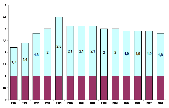 Ведущей причиной, делающей занятость на предприятиях с иностранным участием привлекательной для россиян является более высокая заработная плата. Кроме того до начала восстановительного роста зарплата на этих предприятиях росла относительно более темпами (рис.3). Если в целом по России в сопоставимых показателях (долларах США) номинальная заработная увеличилась за весь период рыночных реформ в 20 раз, а за период, за который имеются данные по иностранным и смешанным предприятиям ( гг.), - в 4,8 раза, то для занятых на предприятиях и в организациях с иностранным участием заработная плата увеличилась в 56 раз. Сегодня оплата труда в этом секторе почти в 2 раза выше средней по стране. Правда столь существенные различия могут быть связаны в том числе с концентрацией значительной части таких предприятий в высокооплачиваемых видах деятельности.