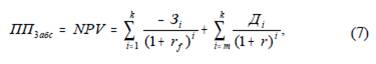 Выражения (7) и (8) могут использоваться в ситуациях, когда оценке подлежат будущие, еще не начатые, проекты. В случаях, когда реализация проекта уже началась, для оценки величины прибыли от проекта за все время его реализации можно применять слегка видоизмененный вариант выражения (7):
