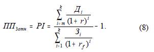 r - ставка доходности, соответствующая рискам аналогичных инвестиционных проектов. Эта же величина, выраженная в относительной форме, рассчитывается как индекс доходности: