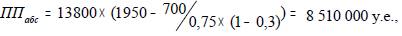 Полезная (продаваемая) площадь здания составляет: Sn = (75 х 2 + 40 х 2) х 15 х 4 =кв. м. Тогда, подставляя исходные данные в (10.35), получим ПП в абсолютном (денежном) выражении: