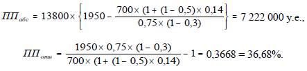 И подставляя исходные данные в (11.36), получим относительное значение предпринимательской прибыли: