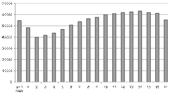Аккумулируемые в федеральной базе данных сведения позволяют определить возрастные интервалы, характеризующиеся минимальным и максимальным уровнем заболеваемости при совокупном рассмотрении функциональной и хронической патологии (рис. 1). Вначале отмечается ее снижение с рождения до 3 лет и затем плавное повышение до 14-летнего возраста с последующим некоторым снижением к 17 годам. Первое снижение можно объяснить повышенным вниманием к лечению детей в первые два года жизни и, в определенной степени, смертностью детей с отдельными формами врожденной патологии. Последующий подъем объясняется накоплением патологии, вызываемой разнообразными причинами, приводящими к реализации болезней с наследственным предрасположением (мультифакториальные заболевания, реализующиеся под воздействием негативных факторов окружающей макро - и микросреды, в том числе и в школе – нарушение осанки, снижение зрения, нарушения в системе пищеварения). В то же время, второе снижение, начинающееся в 15 лет, определяется в значительной степени интенсификацией диспансеризации подростков, в процессе которой значительная часть диагнозов функциональных заболеваний снимается.