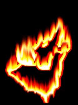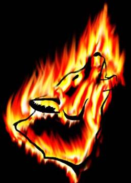 | 14. Примените тот же фильтр и ко второму слою. Только подберите другой вариант искажения. Для этого в окне Wave нажимайте кнопку Randomize до тех пор пока не получите нужный результат. Вставьте первоначальный объект между двумя слоями с пламенем и затрите некоторые участки на верхнем слое с помощь инструмента Eraser Tool(E) с параметром Hardness(окно Brushes) равным 0%, чтобы был виден "поджигаемый" объект |