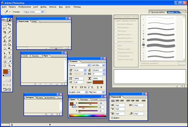 При выборе пункта палитра немедленно появится в главном окне программы (рис.4). Если палитра уже отображается, то при выборе данной команды палитра исчезает с экрана.