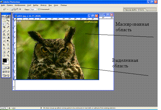 Таким образом, если на изображении существуют выделенная, то все инструменты редактирования действуют только в пределах этой области, а остальная часть изображения, расположенная за пределами маскированной области, остается неприкосновенной.