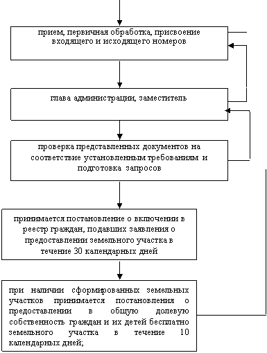 последовательности административных процедур и административных действий при бесплатном предоставлении земельного участка гражданам, имеющим трёх и более детей, для индивидуального жилищного или дачного строительства: