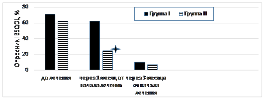 По данным дневников пациентов, купирование клинической симптоматики у пациентов I группы наступило через 83,5±1,8 дня, у пациентов 2 группы через 23,4±2,1 дня.