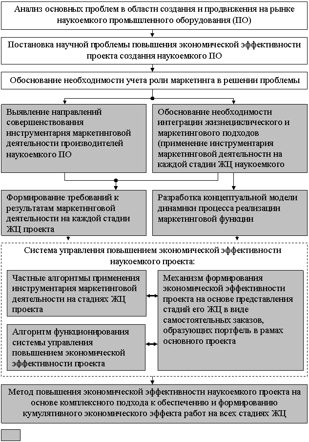 2) формирование комплексного подхода к повышению экономической эффективности наукоемкого проекта с учетом применения инструментария маркетинговой деятельности;