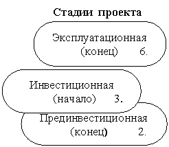 • 1, 2, 3 – прединвестиционная, инвестиционная и эксплуатационная стадии наукоемкого проекта соответственно;