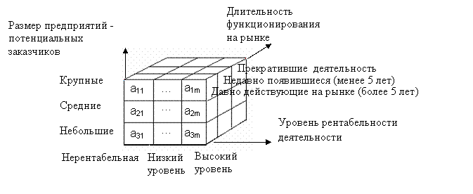 – сегментирования рынка потенциальных потребителей будущего наукоемкого ПО – с помощью двухуровневой модели: макросегментирования– на основе анализа и учета важнейших бизнес-характеристик предприятий – потенциальных потребителей ПО (рис. 4) и микросегментирования – на базе учета показателей специфики их производственной деятельности и требований, предъявляемых к техническому уровню оборудования.