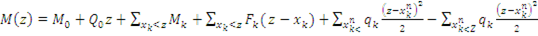 ); M0 и Q0 - изгибающий момент и перерезывающая сила в левом сечении.