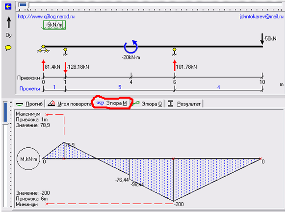 Рисунок 13 – Просмотр эпюры изгибающих моментов