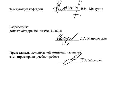 Учебно-методический комплекс одобрен на заседании кафедры менеджмента от «22» июня 2011г., протокол №10.