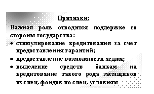 Возможность получения льготных условий кредитования, индивидуальный подход к заемщику (ИПЗ)[10] | Есть (внимание уделяется наличию расчетно-кассового обслуживания в Банке) | Есть (возможность получения поддержки правительства для предприятий Москвы) | Есть (внимание уделяется кредитной истории); Региональные программы для Республики Татарстан | Есть (ИПЗ является отличительной особенностью Банка) |