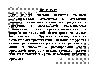 Сравнительная оценка привлекательности существующих специализированных кредитных программ для малого и среднего бизнеса банков – лидеров в области кредитования малых предприятий позволила выявить ряд обстоятельств. Во-первых, кредитные программы различных банков рассчитаны на определенных заемщиков; во-вторых, созрела необходимость выделения четырех основных категорий заемщиков, соответствующих как специализированным программам кредитных линеек банков, так и критериям привлекательности кредитных продуктов для самих предприятий малого и среднего бизнеса.