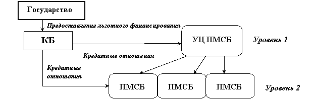 При обращении с кредитной заявкой на получение кредита заемщиками, отнесенными к категории ПМСБ «0», и особенно ПМСБ «–», банки неохотно идут на такое рискованное финансирование, поэтому, на наш взгляд, необходимо включение в данные схемы взаимодействия мезорегулятора – Российского банка развития в качестве дополнительного финансового гаранта. Миссия финансового гаранта может заключаться либо в предоставлении банкам, кредитующим такого рода заемщиков, дополнительного целевого финансирования на приемлемых условиях; либо в диверсификации рисков невозврата в форме софинансирования ПМСБ «0» и ПМСБ «–» несколькими банками.