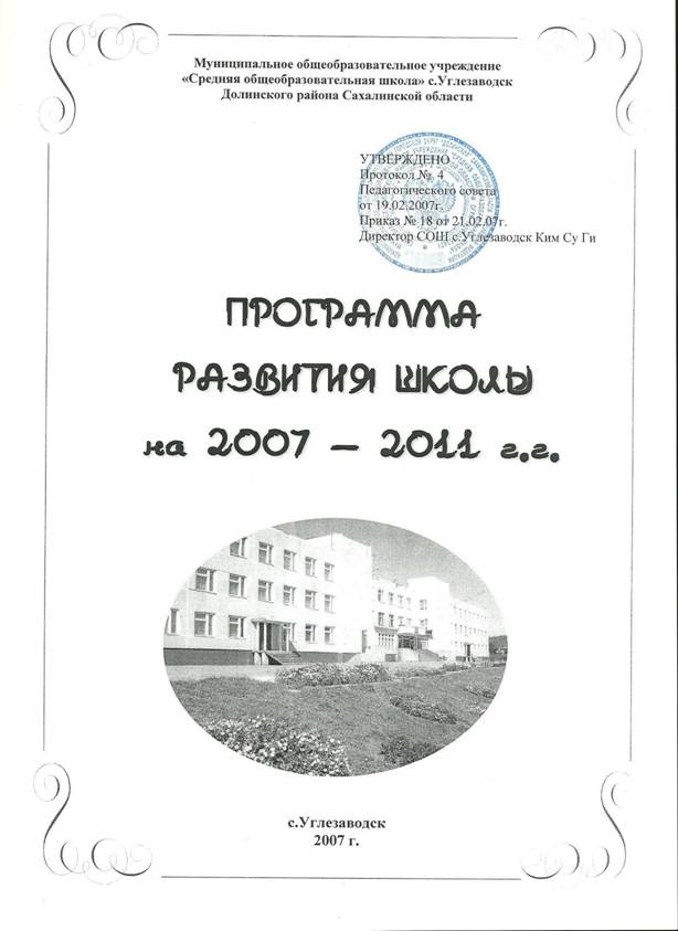 Наименование Программы | Программа развития муниципального общеобразовательного учреждения «Средней общеобразовательной школы» с. Углезаводск Долинского района с 2007 по 2011 годы |