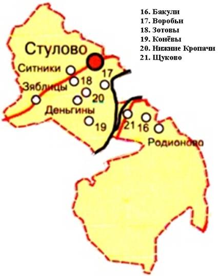 На территории Стуловского поселения расположено 11 населенных пунктов в том числе: