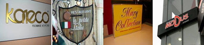 · средства визуальных коммуникаций, которые используются в наружной рекламе: от рекламных щитов (биллбордов) и стационарных панно на зданиях (брандмауэров) до световых коробов и транспарантов-растяжек;