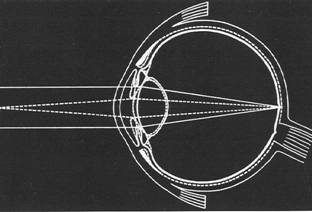 Прежде чем попасть на сетчатку, световые лучи проходят через ряд прозрачных сред глаза: роговица, влага передней камеры, хрусталик, стекловидное тело. В каждой из этих сред лучи преломляются и в конечном итоге фокусируются на сетчатке.
