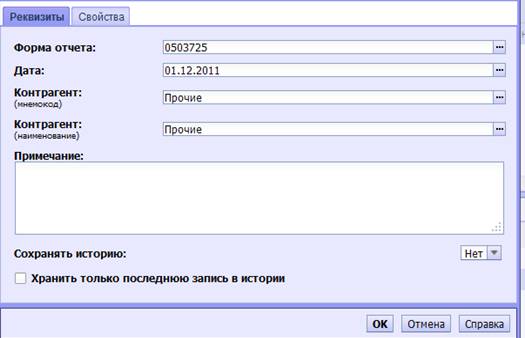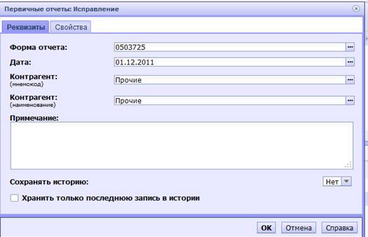 Данное действие позволяет исправлять поля «Дата», «Форма», «Контрагент», «Примечание» и дополнительные свойства отчета. После внесения необходимых изменений, следует нажать кнопку «OK».