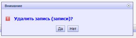 Действие предназначено для удаления отчетов. При выборе действия появится запрос о подтверждении удаления.